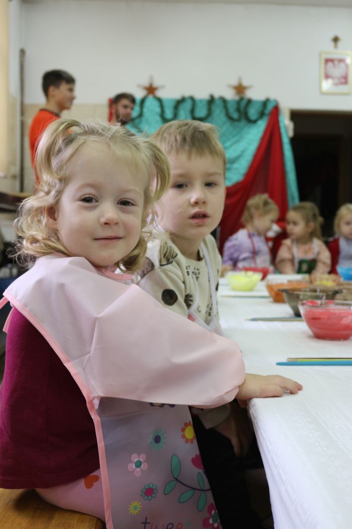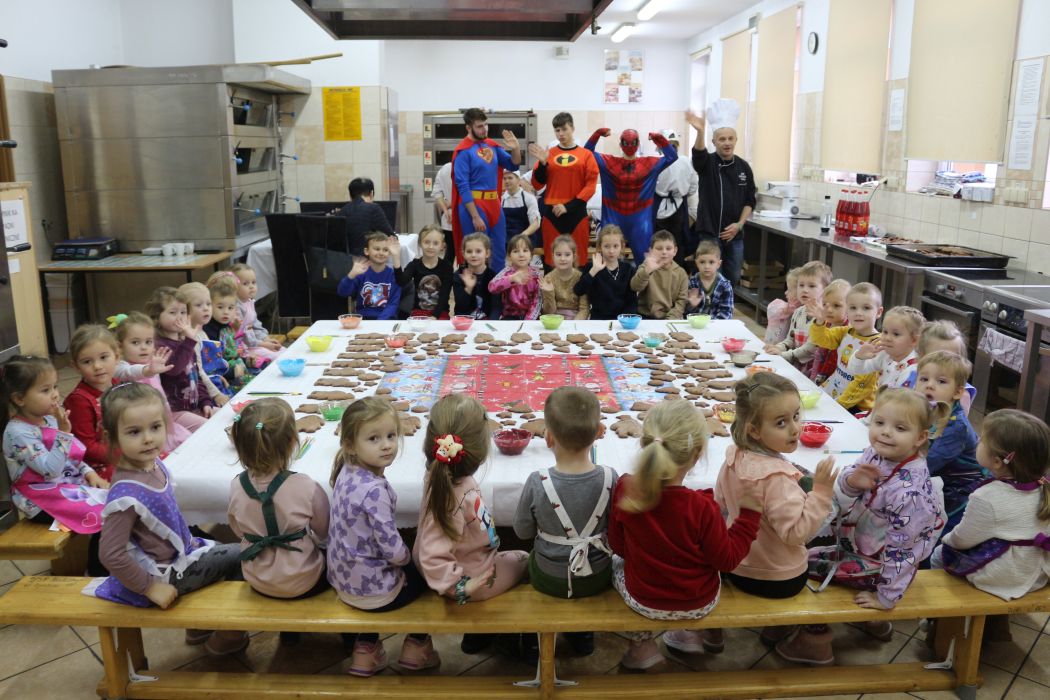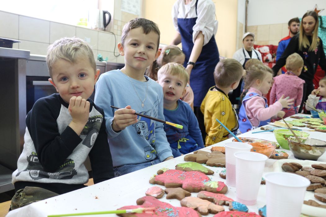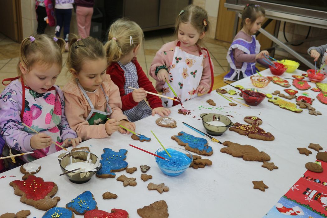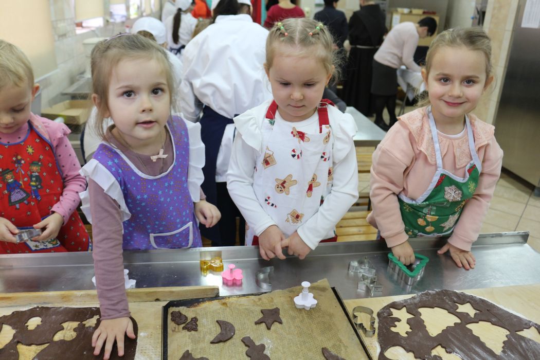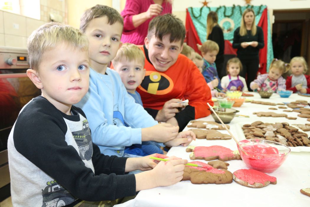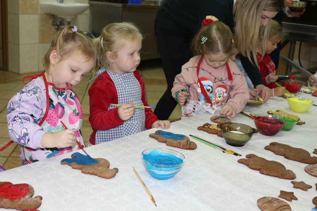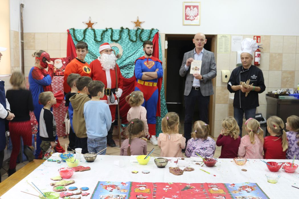 Spotkanie rozpoczęło się od wystąpienia o. Szymona Wierzbiaka z Klasztoru Ojców Franciszkanów z Zakliczyna. Duchowny uświadomił dzieciom jak piękny i radosny jest okres Świąt Bożego Narodzenia i oczekiwania na narodziny Jezusa. Następnie mali „piernikarze” przystąpili do wyrabiania, formowania i wycinania różnorodnych kształtów z ciasta. Po upieczeniu dekorowali lukrem i kolorowymi posypkami. Powstawały bardzo ciekawe i jakże pomysłowe wzory na piernikach - pyszny, kolorowy lukier smakował wszystkim milusińskim.