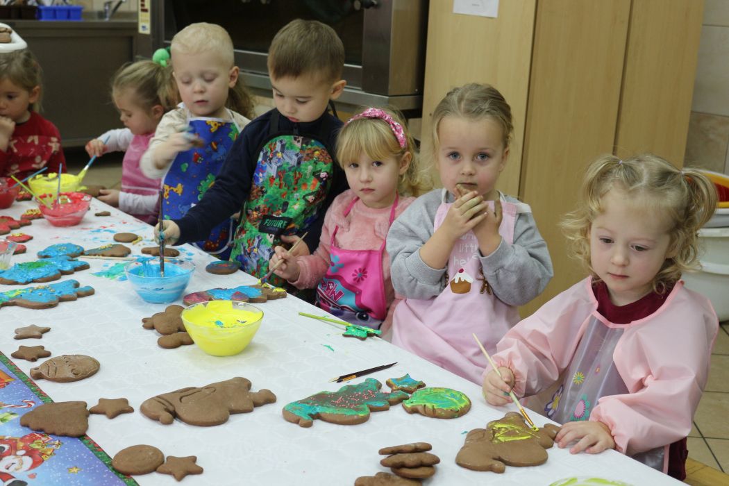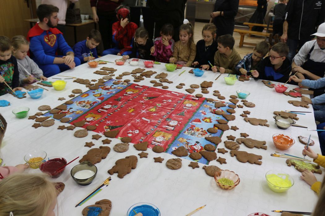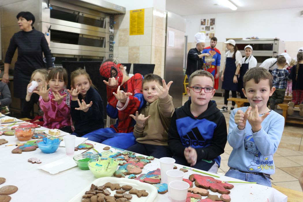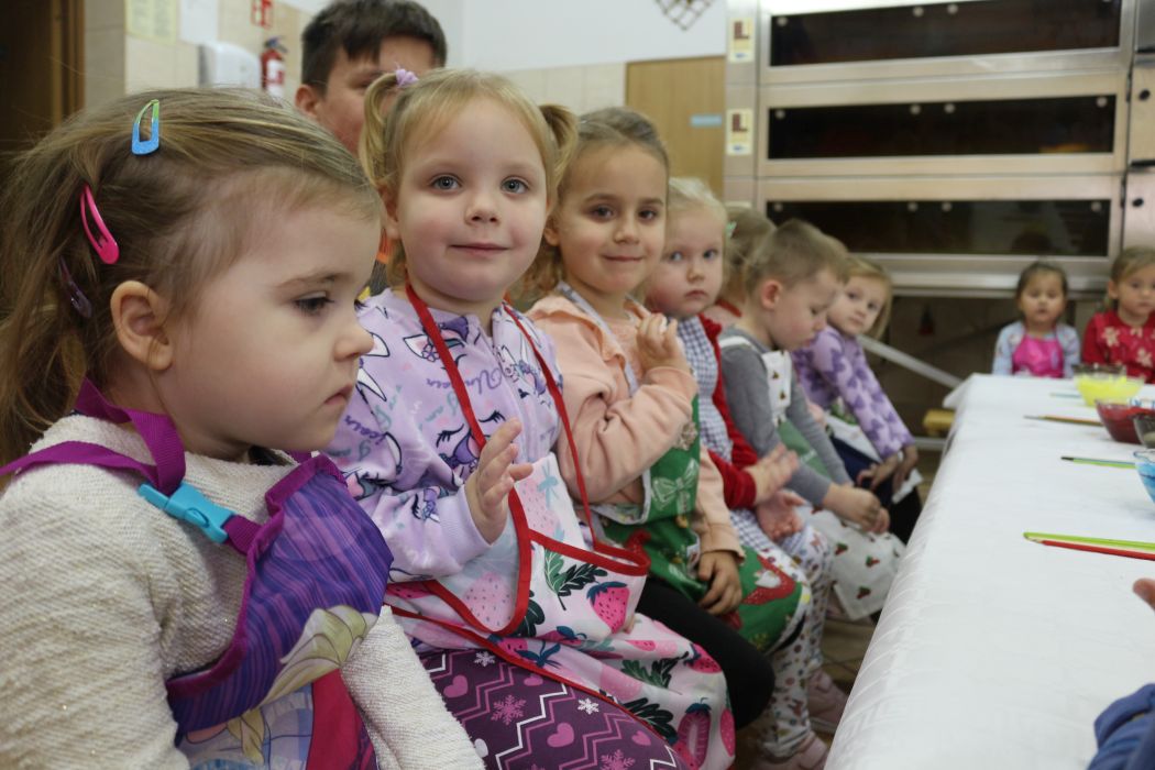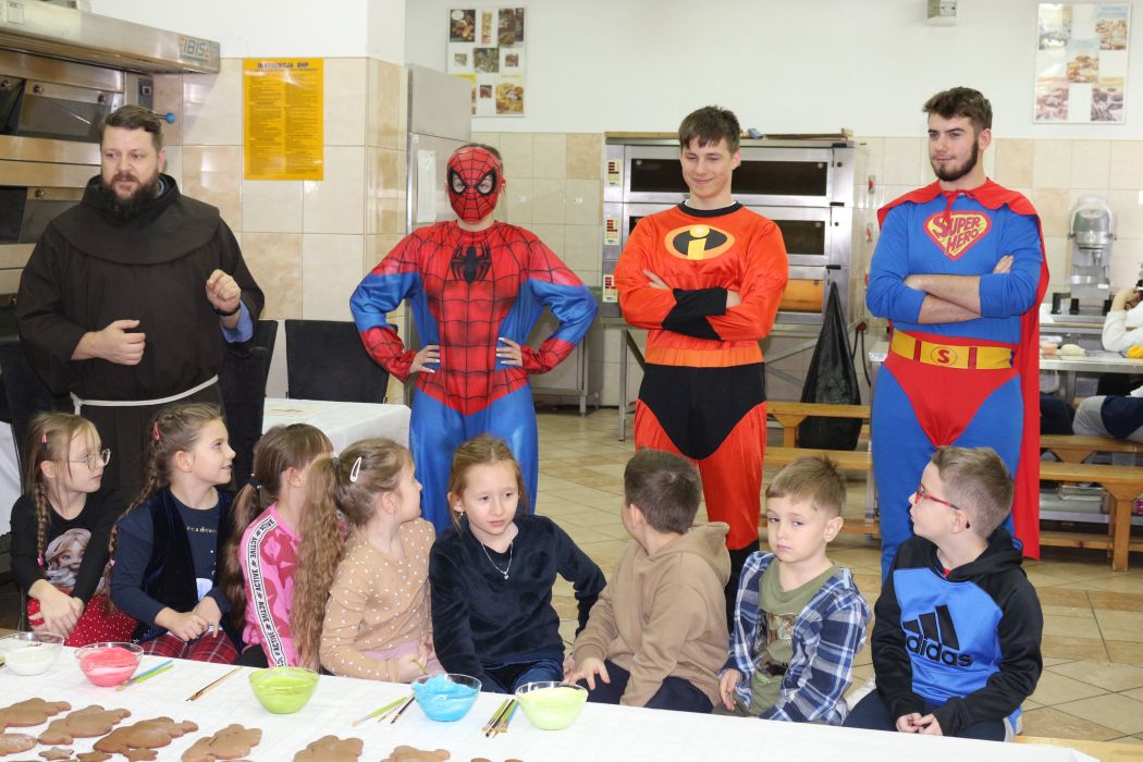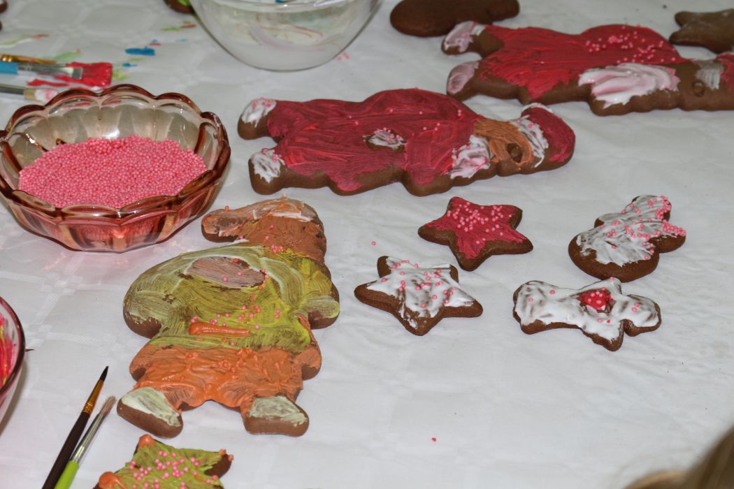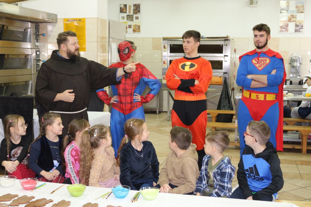 Spotkanie rozpoczęło się od wystąpienia o. Szymona Wierzbiaka z Klasztoru Ojców Franciszkanów z Zakliczyna. Duchowny uświadomił dzieciom jak piękny i radosny jest okres Świąt Bożego Narodzenia i oczekiwania na narodziny Jezusa. Następnie mali „piernikarze” przystąpili do wyrabiania, formowania i wycinania różnorodnych kształtów z ciasta. Po upieczeniu dekorowali lukrem i kolorowymi posypkami. Powstawały bardzo ciekawe i jakże pomysłowe wzory na piernikach - pyszny, kolorowy lukier smakował wszystkim milusińskim.