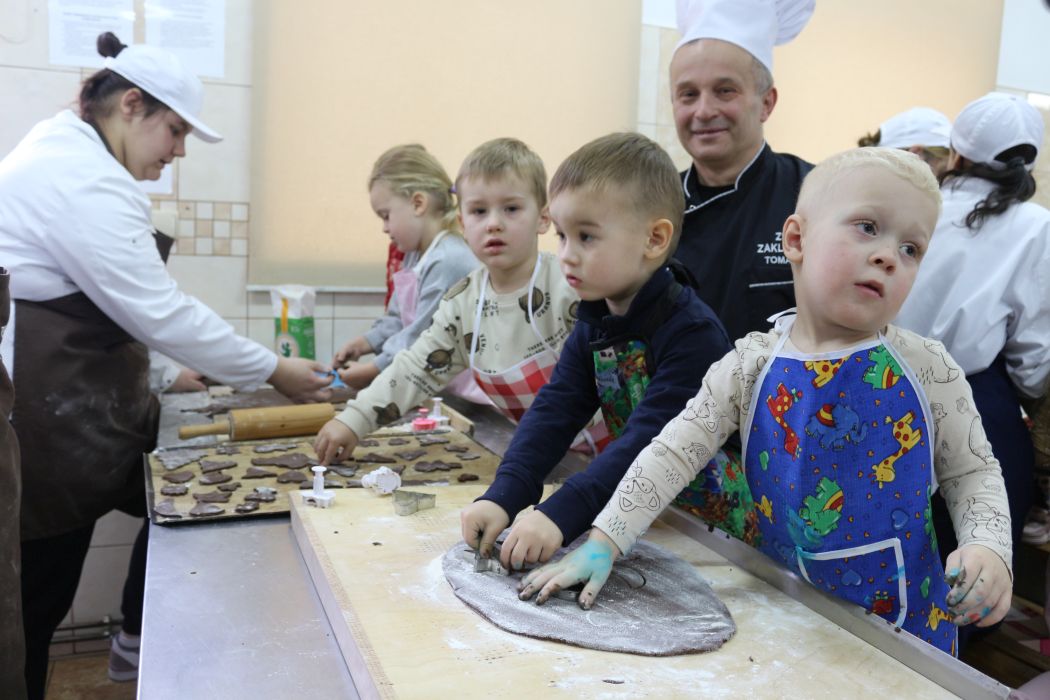 W Zespole Szkół Ponadpodstawowych w Zakliczynie zapachniało Świętami... I to dosłownie! Wszystko za sprawą warsztatów piernikowych pod czujnym okiem pana Tomasza, który wraz z uczniami klas II B, III B, oraz IV TG, wprowadzili nas do jakże cudownej, świątecznej atmosfery. Na czwartkowym spotkaniu gościliśmy przedszkolaki z Olszyn „Wesołe Maczki” oraz Szkołę Filialną z Charzewic.