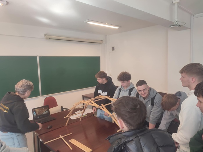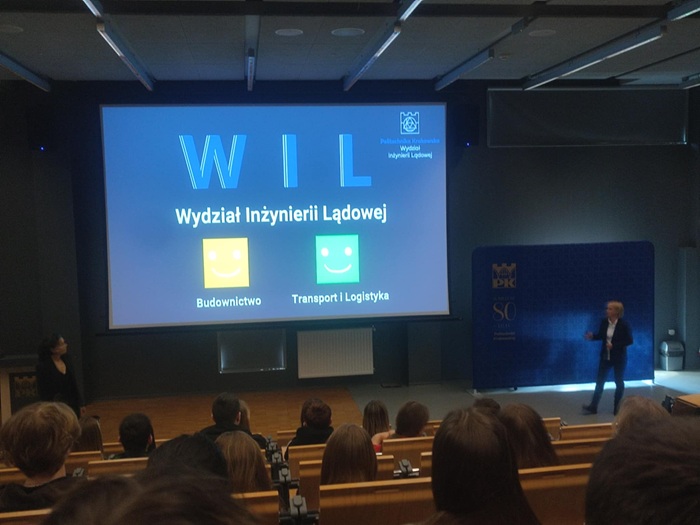 W dniu 21.03.2025r. uczniowie 4 klasy Technikum Budowlanego wzięli udział w wydarzeniu organizowanym przez Wydział Inżynierii Lądowej Politechniki Krakowskiej. Uczniowie w ramach wydarzenia brali udział w szeregu krótkich zajęć laboratoryjnych i wykładów pokazujących i promujących studia na kierunkach Budownictwo oraz Transport i Logistyka.