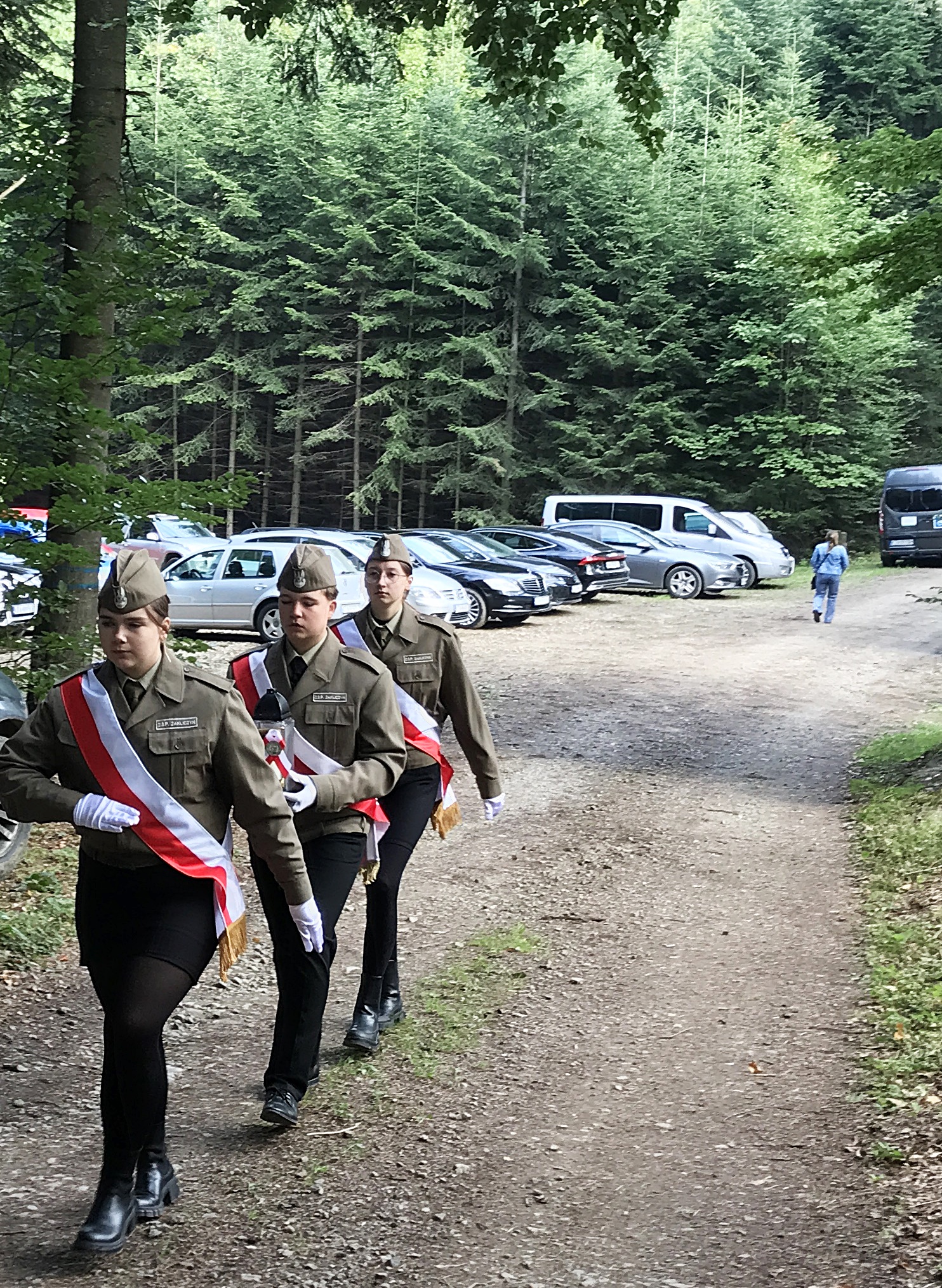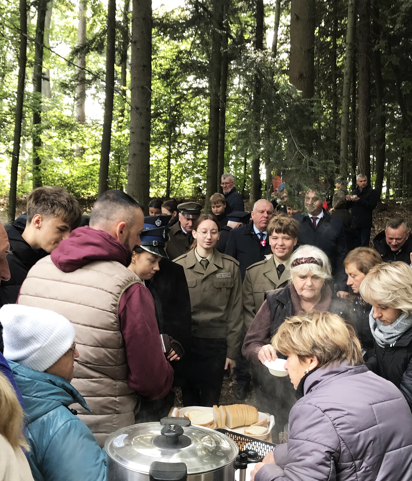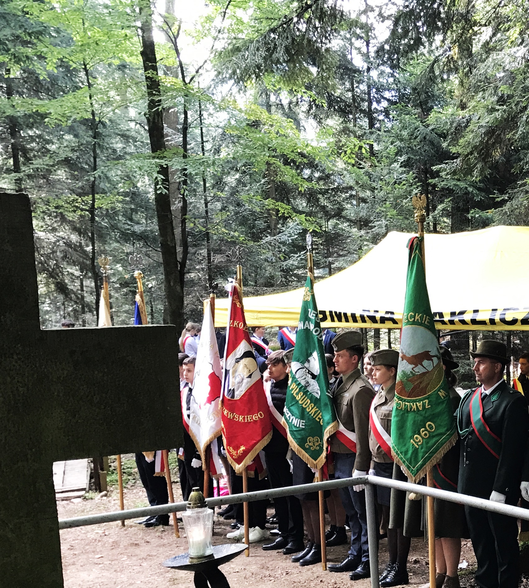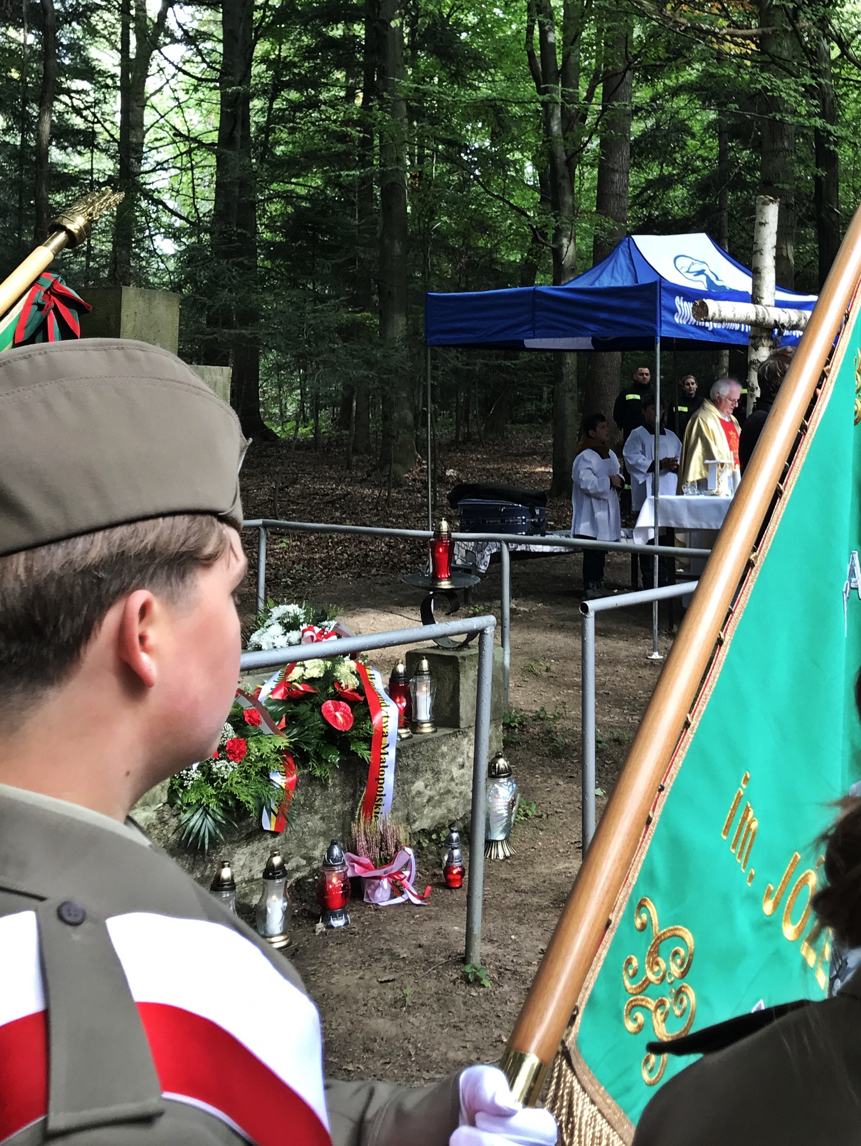 Podczas apelu poległych oddano hołd bohaterom, składając wiązanki kwiatów i zapalając znicze w miejscach, gdzie zginęli żołnierze Armii Krajowej. Nasza reprezentacja udała się pod pomnik Władysława Mossoczego, absolwenta medycyny Uniwersytetu Jagiellońskiego, który jako lekarz batalionowy Armii Krajowej został zastrzelony 5 października 1944 roku podczas obławy żandarmerii niemieckiej. W miejscu jego śmierci zapaliliśmy „światło pamięci”, oddając hołd żołnierzowi, który ofiarnie bronił Ojczyzny. Po części oficjalnej Poczet Sztandarowy naszej szkoły wziął udział w uroczystej mszy świętej polowej odprawionej w intencji poległych żołnierzy oraz Ojczyzny, którą odprawił ks. Paweł Mikulski, proboszcz zakliczyńskiej parafii pw. św. Idziego. Po mszy udaliśmy się na spotkanie refleksyjne oraz poczęstunek przygotowany przez Panie z Koła Gospodyń „Wola Stróska”.