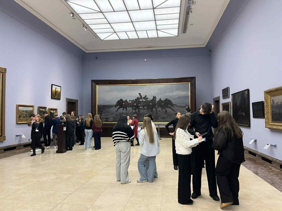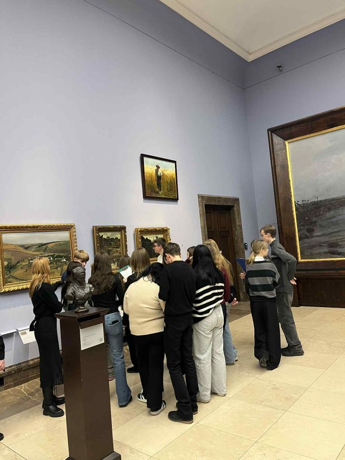 Pierwszym punktem programu była lekcja muzealna w oddziale Muzeum Narodowego w Sukiennicach. Uczniowie mieli okazję zobaczyć najważniejsze dzieła malarstwa polskiego XIX wieku, poznać sylwetki artystów. Zajęcia prowadzone przez edukatora muzealnego pozwoliły na aktywny udział, dzięki czemu młodzież mogła lepiej zrozumieć kontekst powstawania dzieł oraz ich znaczenie dla kultury narodowej.