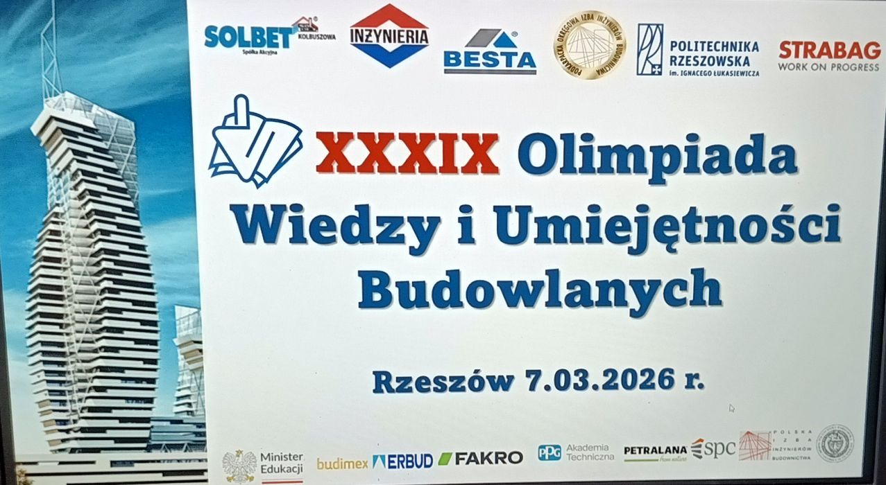 W dniu 7 marca 2026 roku uczniowie Zespołu Szkół Ponadpodstawowych w Zakliczynie wzięli udział w prestiżowych zmaganiach etapu okręgowego Olimpiady Wiedzy i Umiejętności Budowlanych (OWiUB). Zawody dla okręgu 7 (rzeszowskiego) odbyły się w atmosferze pełnej skupienia i merytorycznej rywalizacji.
